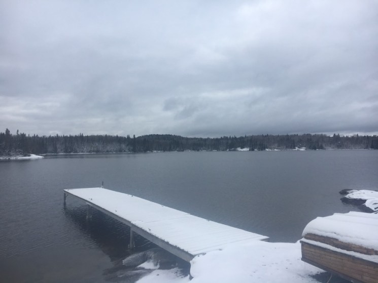 The climate near Lake Superior is very damp. Late in the year, fog is frequent; a certain chill hangs in the air, permeating boots and coats and settling into your lungs. The only way to make the chill disappear is to sit by the wood stove with a bowl of moose stew. While some autumns are colder than others, the weather tends to turn to rain and near-freezing temperatures in October, and snow is first seen in September to early October, but it does not stay. In early November there is often a deceptive turnaround to sunlight and pleasant warmer temperatures which allow for the final camp closing to be done–– then the ground finally begins to freeze. The land is grey and brown, with everything wilted or in hibernation aside from evergreen trees and Labrador tea plants. The sky turns grey and depthless. A sparkling blanket of snow settles over the swamps. Smaller lakes begin to freeze over.
